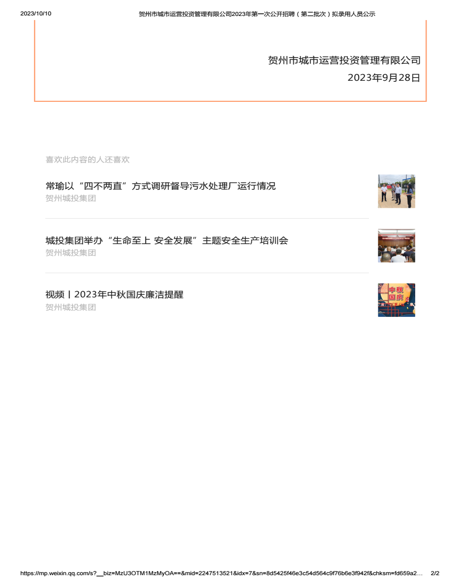 上一篇:賀州市城市運(yùn)營投資管理有限公司2023年第一次招聘公告(第二批次)