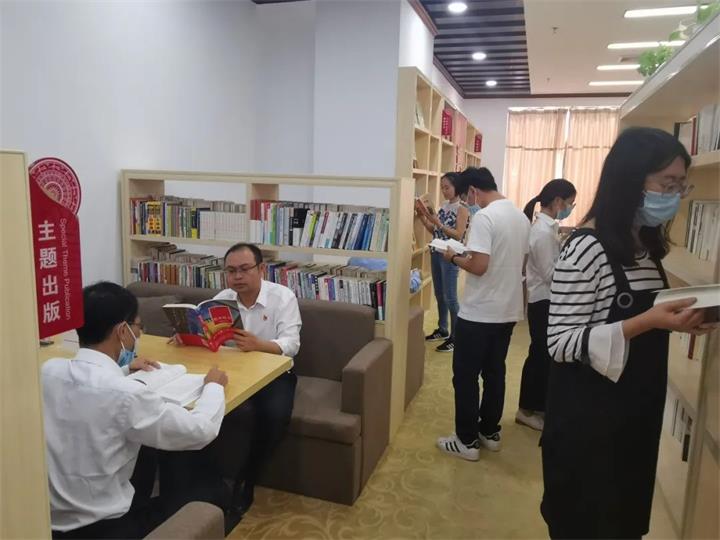 城投集團(tuán)在推動建設(shè)“紅灣”閱讀體驗(yàn)區(qū)中始終堅(jiān)持對標(biāo)爭先、謀定快動,通過設(shè)置固定場地、規(guī)范標(biāo)志和統(tǒng)一書籍等系列標(biāo)準(zhǔn)化建設(shè),逐步建立健全運(yùn)營機(jī)制,實(shí)現(xiàn)體驗(yàn)區(qū)規(guī)范化、標(biāo)準(zhǔn)化建成運(yùn)行。城投集團(tuán)“紅灣”主題閱讀體驗(yàn)區(qū)集職工書屋及“紅灣”閱讀于一體,分設(shè)有“紅灣”主題形象墻、閱讀區(qū)、交流區(qū)、黨員值班崗等功能分區(qū),圖書按借閱、售賣、漂流三個形式進(jìn)行配置,提供了線上線下的借閱功能,可同時容納50人開展讀書活動。體驗(yàn)區(qū)目前藏書量上千冊,分類包含黨建讀物、中國文學(xué)、綜合圖書等,“紅灣閱讀”微信小程序目前亦實(shí)現(xiàn)線上借閱功能。