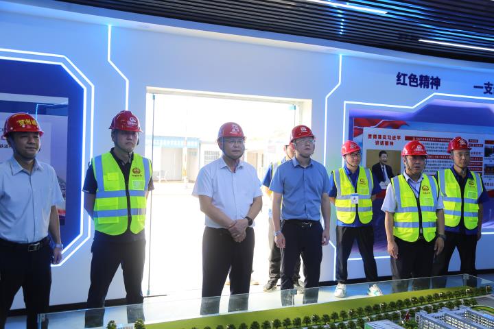 在賀州第三高級中學(xué)項目現(xiàn)場,黃俊詳細(xì)地觀摩了項目部VR體驗室、項目積分商城、智慧工地展廳、現(xiàn)場安全質(zhì)量標(biāo)準(zhǔn)化管理樣板間等,對項目的施工工藝、建筑品質(zhì)、管理水平等方面給予了高度的贊賞。他要求,各參建單位要加大聯(lián)動,密切配合,嚴(yán)格把控風(fēng)險,重視工程安全、質(zhì)量、進(jìn)度和成本,以工匠精神打造精品項目,高標(biāo)準(zhǔn)、高水平、高質(zhì)量推動項目建成。